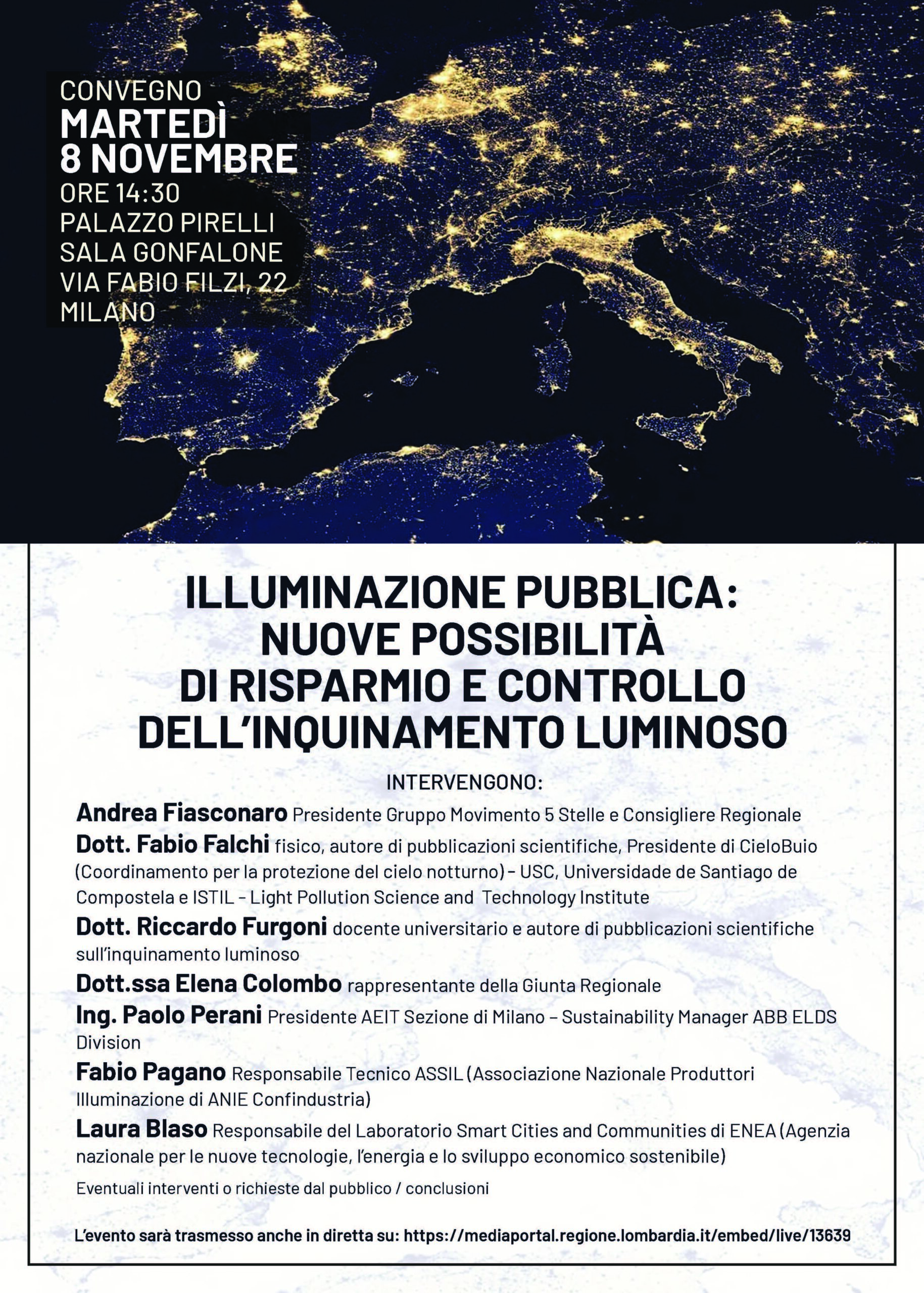 Il giorno 8 novembre si è tenuto in regione Lombardia il Convegno “Illuminazione pubblica: nuove possibilità di risparmio e controllo dell’inquinamento luminoso”.