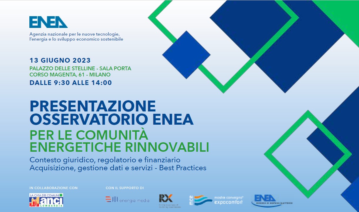 L’incontro, realizzato in collaborazione con Anci Lombardia, Energia Media e MCE, promuove un confronto e la condivisione degli obiettivi e delle attività svolte dall’Osservatorio CER di ENEA, costituitosi a seguito della fattiva partecipazione degli stakeholder e dei risultati conseguiti dai tavoli di lavoro avviati nel 2022 presso la